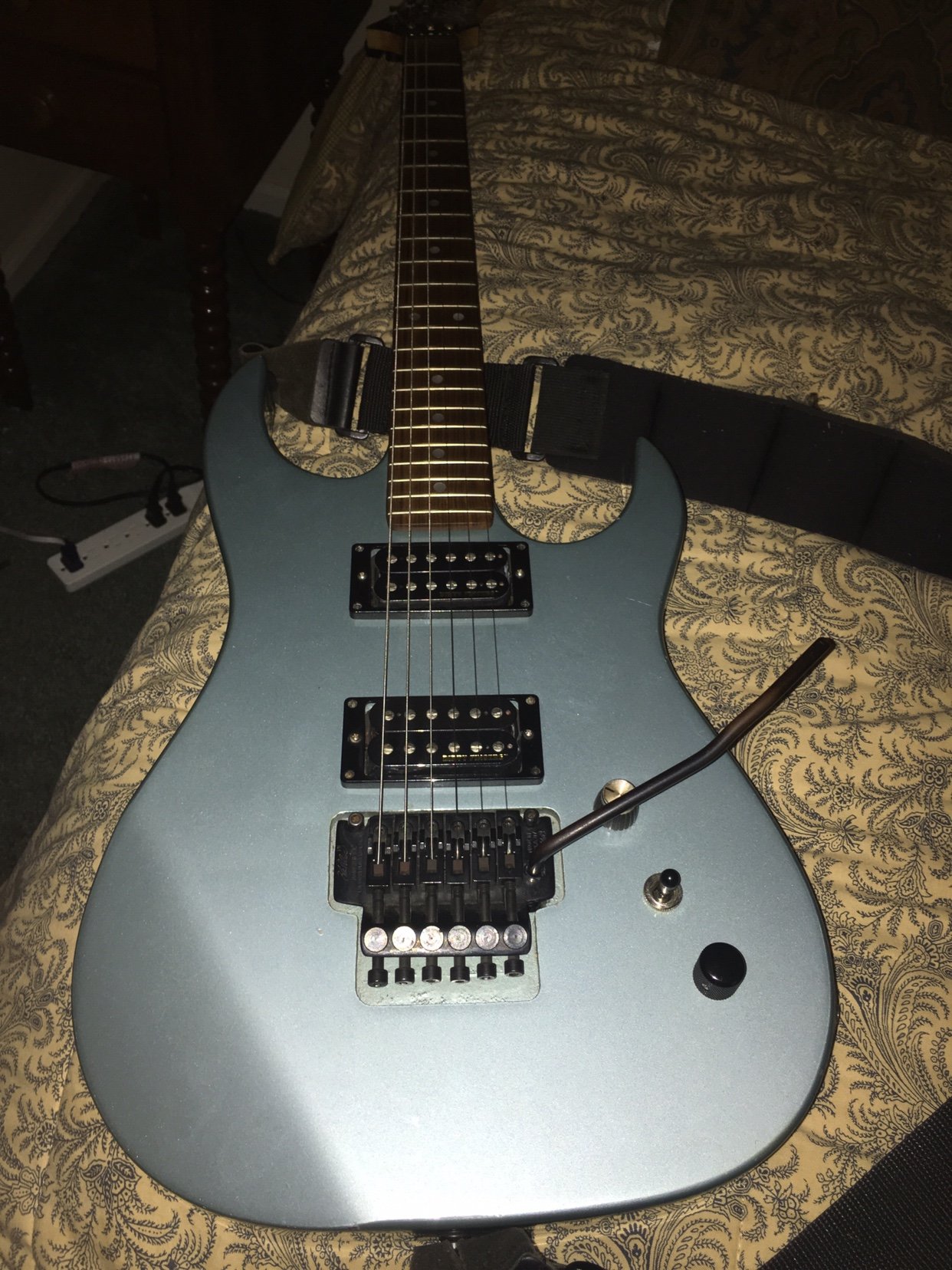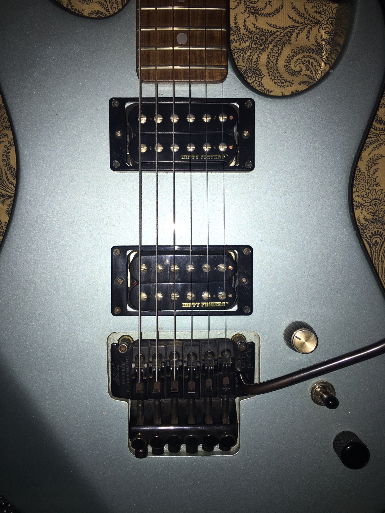 Hello all, I recently got a 1980s bc Rich Gunslinger from a small town guitar shop for a real deal -$300 total with an original hard shell case. The the headstock states it was made in the USA and I am fairly sure it's from the 1980s (said the salesman) but I would love to know the exact model, year color, value blah blah blah, but I can't seem to get any info on the thing. It has new looking matte black Sperzel tuners, obviously non original (to the guitar) dirty fingers pickups, which really sucks because it's a great pickup but since it has a trem it's spaced incorrectly (don't know whose idea that was! LOL!), and a USA made black Kahler Floyd Rose style "Steeler" trem that I understand was only produced for a short time under a license -and some considered it superior to the original? Lastly, the color reminds me of Gibson's "Pelham blue" or maybe a light slate blue I would personally call it. I'll toss some pics down below oh and by the way the serial number is CA0303 it's barely readable on the back of the headstock. Thanks for any help I'd really love to know!!!