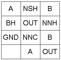 The bridge humbucker will have its coil-split wires soldered together and taped off, and its cold and shield taken to ground. Its hot output is therefore BH. The neck humbucker's wires are NNH (Neck North Hot), NNC (Neck North Cold), NSH (Neck South Hot) and NSC (Neck South Cold). A and B are jumper wires - A connects to A, B connects to B. Out is the output to the volume knob, GND is ground.