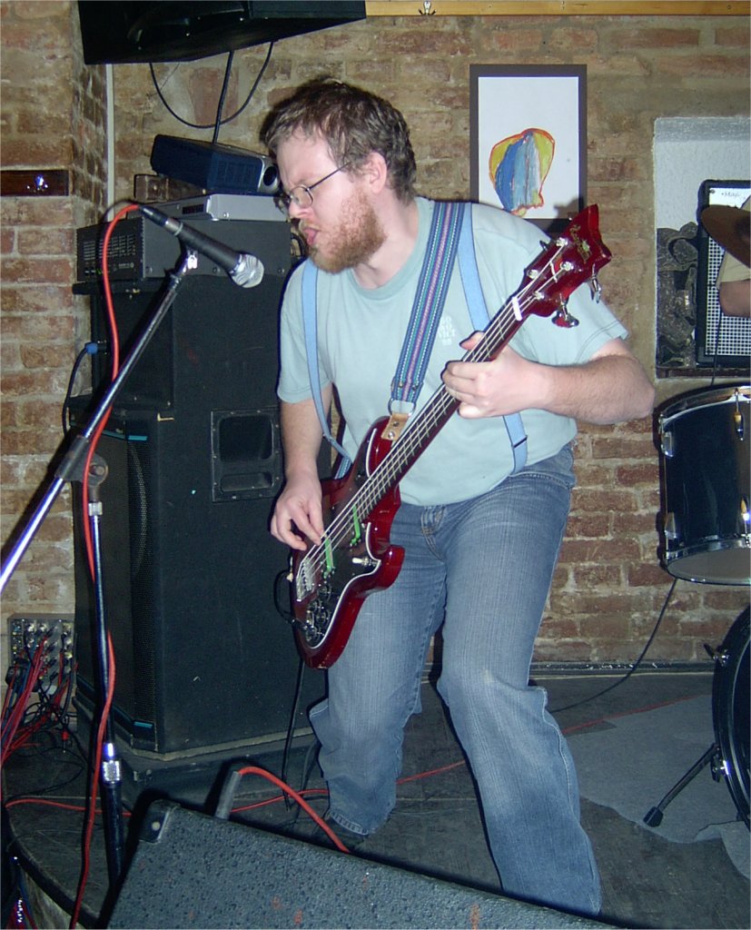 This band is a side project - I'm a lead guitarist normally, but I like to jerk around on bass as well. The sad part is that my Hagstrom bass is slowly becoming unplayable - its tiny neck is warping beyond repair (at least so the repairman said). I'm selling it to a collector friend and getting some playable alternative, hopefully soon.
