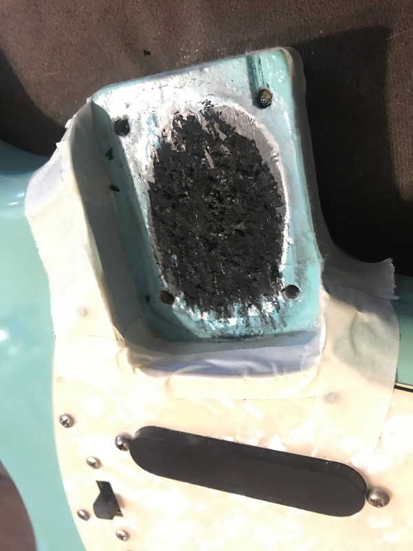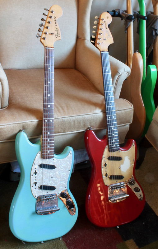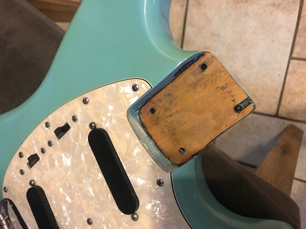 Am in a Mustang mindset of late; I once had a love-hate relationship but really gelling nowadays with my Daphne blue bundle of mostly '66 parts ('66 body, neck and vibrato, vintage bridge, new pickups/wiring.) So with this new familiarity I was semi bothered by some cracks developing in the back of the (fifteen year old refin) body: