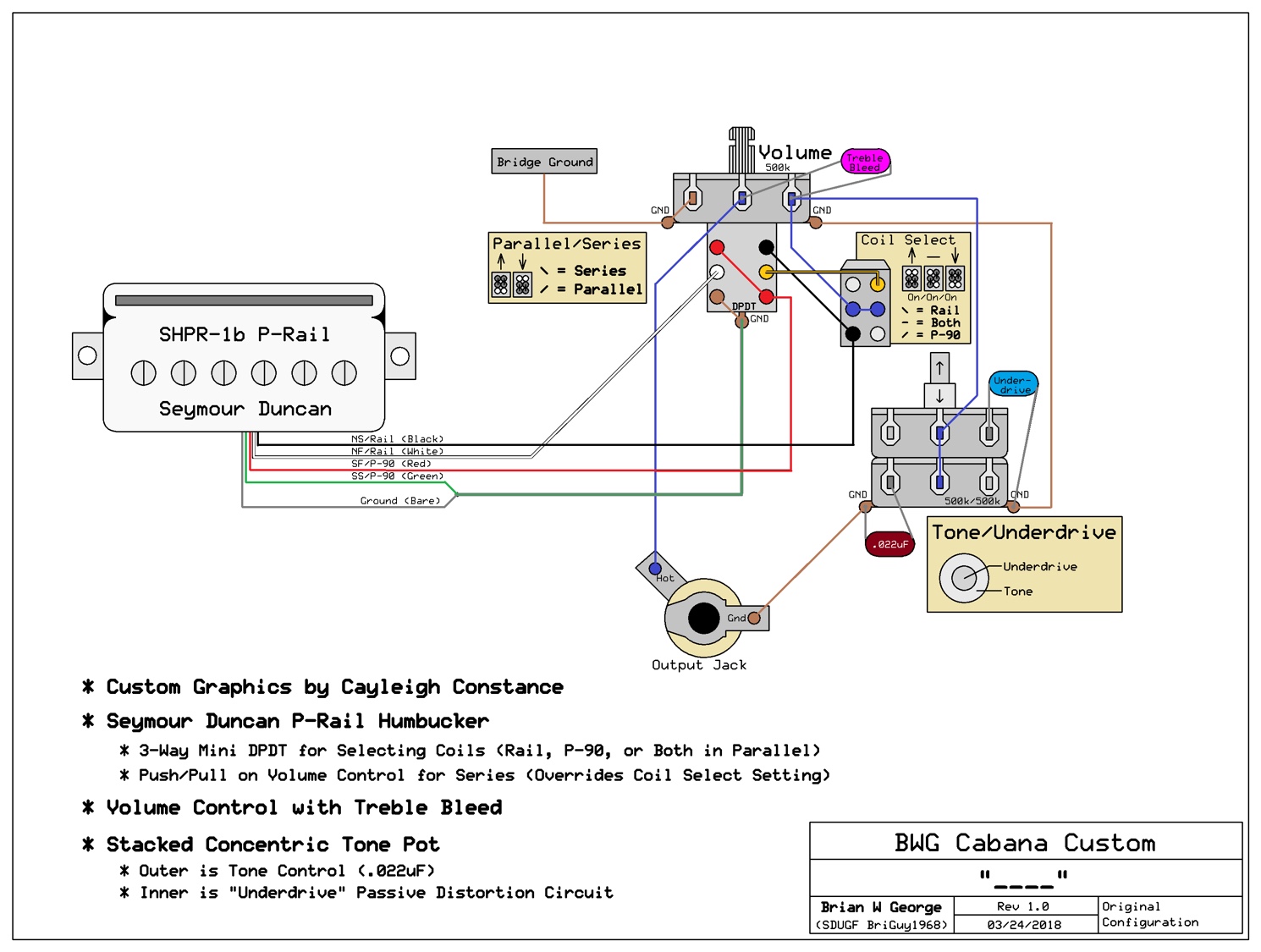 I've read different opinions on series vs parallel configuration with the P-Rails. So I thought, as long as I have everything apart, why not add some push/pull volume pots to provide series/parallel switching.