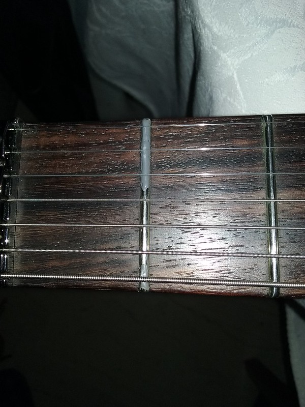 2017-07-02_11-25-07 by panixgr, on FlickrHmm I cannot express this in another way, but a work ON THE FIRST FRET, 20 mins job which costs nothing and will hold for more than a year, giving time to the rest of the frets to wear out naturally, is the definition of CORRECT fix. Changing the fret would require levelling : I TRY TO AVOID THIS RIGHT NOW, for obvious reasons explained above.That's cool that you got creative with it, but that's really a band-aid, not a fix.