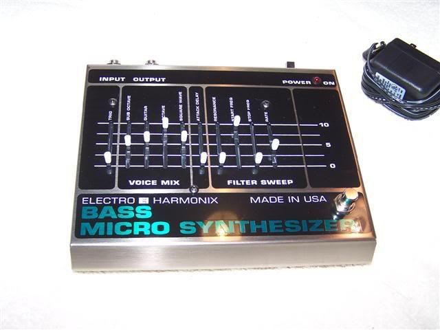For those not in the know, this pedal does a great job of making a bass guitar (or even an electric guitar) sound like classic synth sounds. It won't do real watery or modern type synth sounds, but all the old crunchy, swooshy, and grindy ones are in there. The EHX site has soundclips for those interested. Works great as a single note octave up/down or fuzz too.
