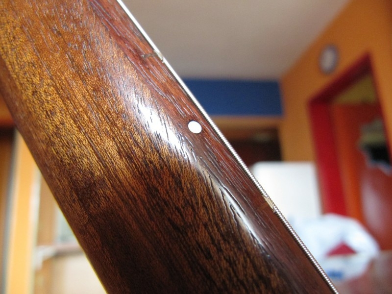 Finish is brown stain and gun stock oil, very comfortable to hold and leaves the wood to breathe.