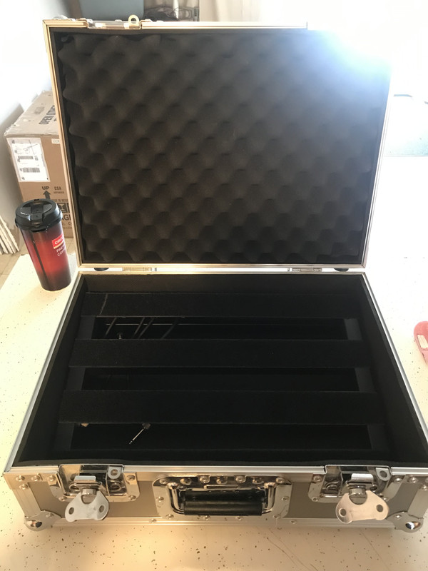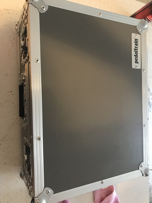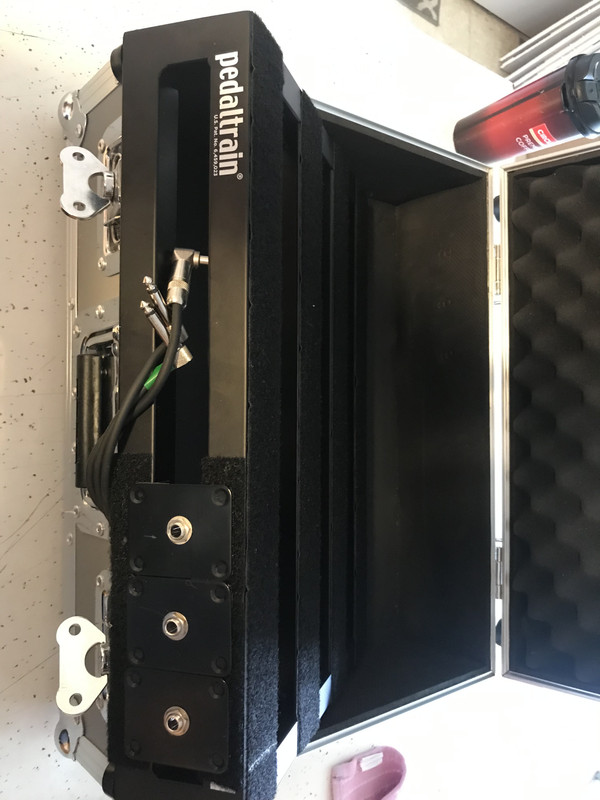 Pedaltrain Classic Jr with Hard-case. It has not been modded or altered in any way. In the pics you can see where I used Velcro and guitar neck plates to add 3 jacks to it. the first is a stereo cable that went to my Two-Rock channel switching pedal. The middle one is for a single stereo cable for the FX loop. A stereo to 2 mono breakout adapter is needed for this, they are like 5 bucks on amazon. I can get you a link. And the last one is for the end of your pedal chain to the amp. I can take it all off and you can save $20 if its not needed. $170 S&pp'd as is or $150 S&PP'd with out the extras.