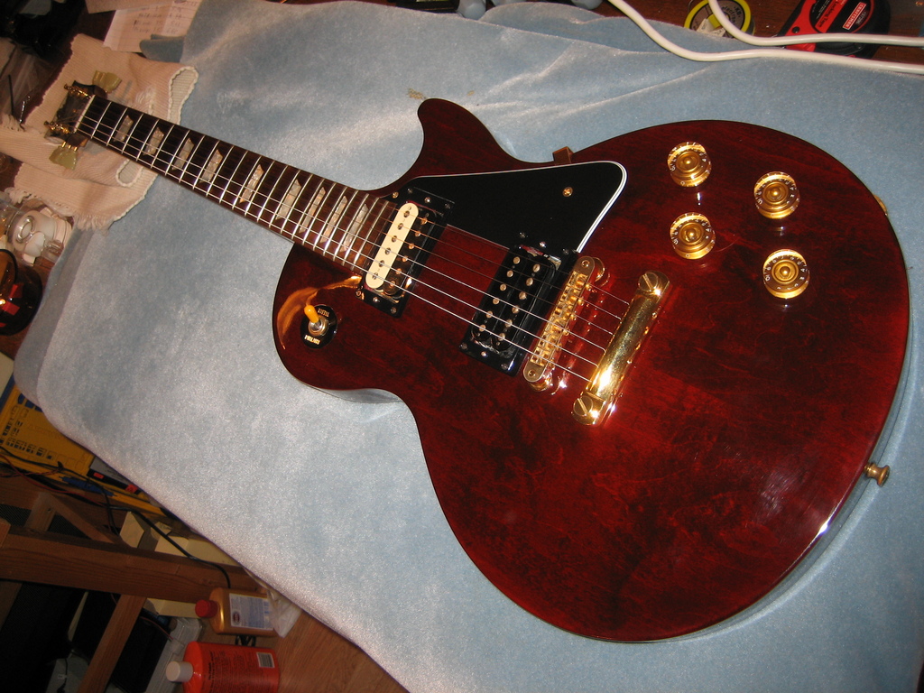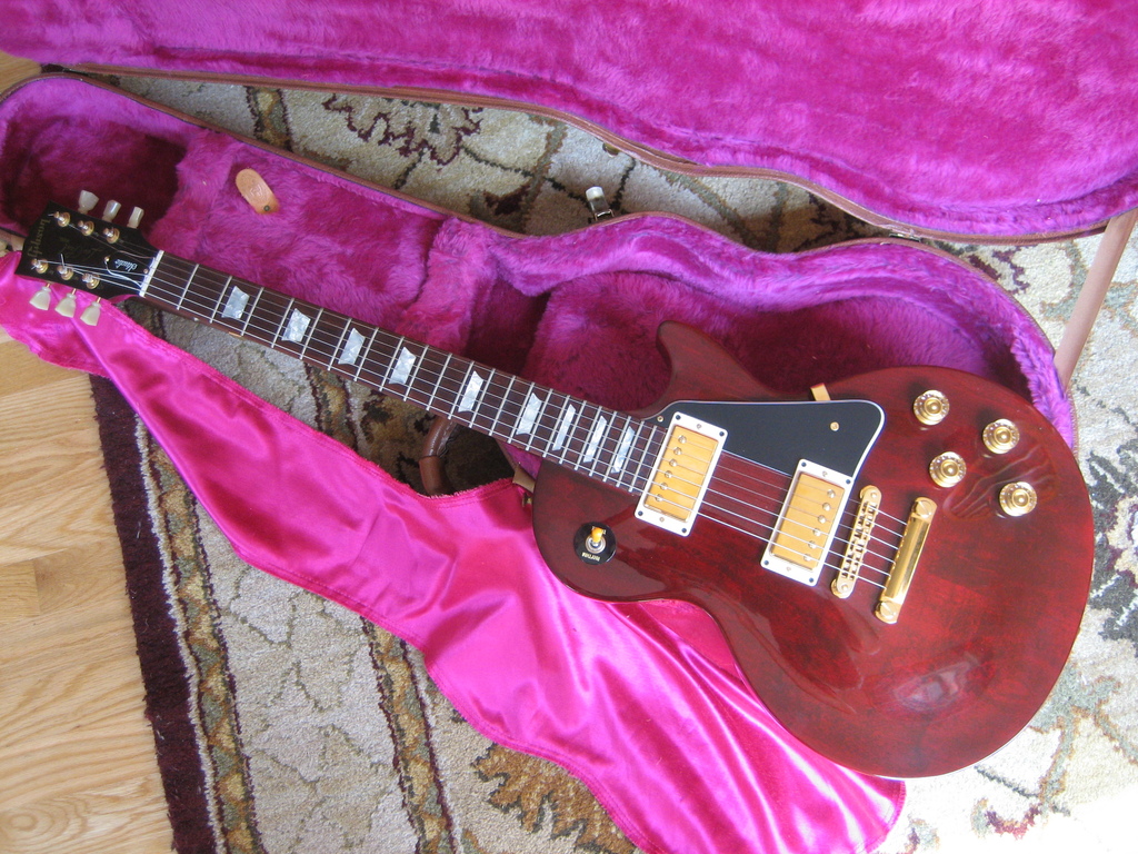 First up is a 1996 Les Paul Studio, wine red, gold hardware.