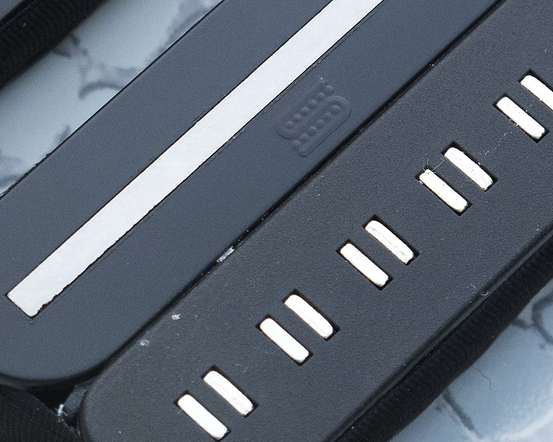 Dr. Barlo, I'll take a pic or two without flash and just overhead lighting. It's not exactly textured (I would call the PA bobbin textured) but not as shiny or black as the normal Duncan bobbins.