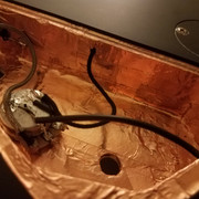 Okay so because I had no idea what else to do, I spent the evening taking out all the copper tape shielding and then reapplying a new layer. I did this just so I could compare it without the tape and with the tape and see if it really did make any difference. I believe it definitely helped, but the buzzing is still there, just not as bad. The volume output still seems lower than it should. Is adding additional layers of shielding just redundant or could it help more? Without blowing up the thread with large pics, here are some thumbnails: