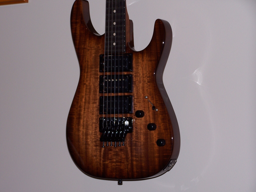 Hot roddded style with high output humbuckers and a Floyd Rose