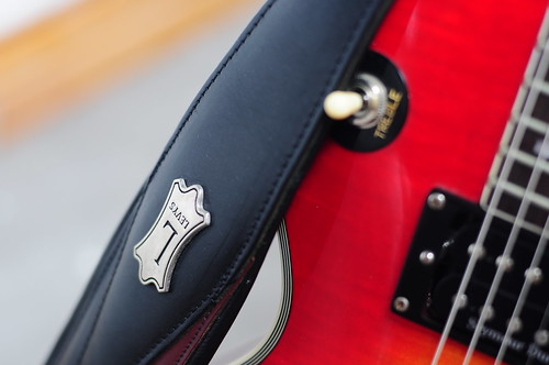 this a new strap that was hand made for me by the singer in the band i am in. his name is stoney paul..he also makes custom motorcycle seats.yes he is on face book. he includes strap locks if ya want them. this one looks great on the ec1000,and is very soft,padded and comfortable. i play very low with my guitar around my waist,and since im so tall,i need a long strap. it is standard deer skin leather but has these black stingray skin inserts or layers under the hand tooled purple leather...very well made custom strap..i would have never bought a strap this nice so thank you stoney...so lets see your straps...got to be some cool ones here to hold up all these killer guitars you guys play.