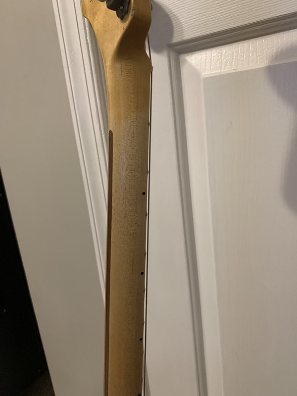There's some chipping around 4 of the tuner holes which doesn't bother me at all...fits the motif.