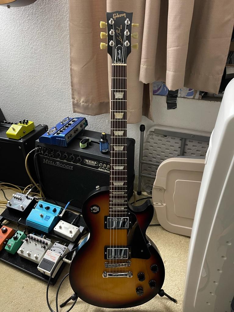 The GAS is strong. Barely two months after my last guitar I came across something I just couldn’t pass up. 2016 Gibson LP Studio in Fireburst finish for well under it normally goes for. Only catch, no case. Oh and the pedal is a EHX Oceans 12 I’ve been wanting for months now. And the guy also threw a Starcaster chorus he swears sounds better than the name suggests in the deal. I promised the wife I’m done after she mentioned the long D word. jk I’m not stopping!