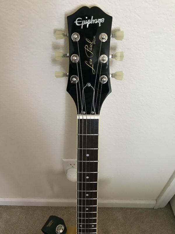 Finally, I replaced the stock strap buttons with a set of Dunlop straplok buttons and replaced the stock tuners with a set of Kluson Revolution 19:1 ratio locking tuners. While I realize these Klusons don't have the proper Les Paul Special white oval buttons, they do have the classic Kluson keystone buttons we're used to seeing on Gibsons and I think they look fantastic on this Epiphone.