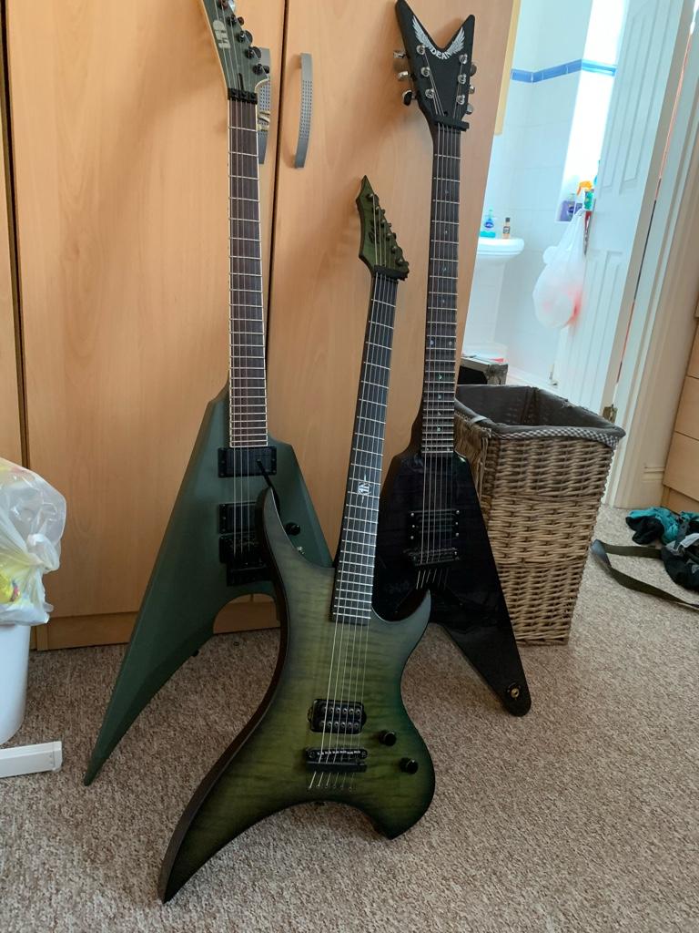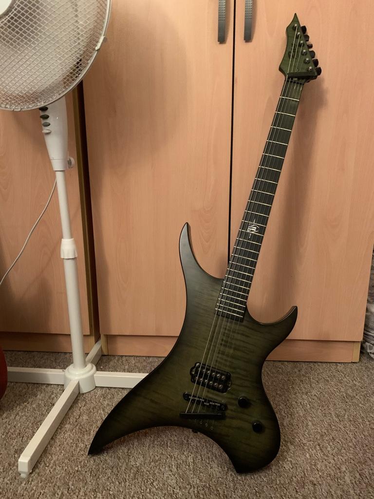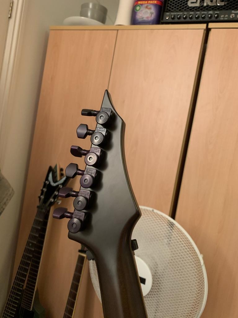 Sperzels locking tunings, Seymour Duncan Invader and Tone Pros bridge.