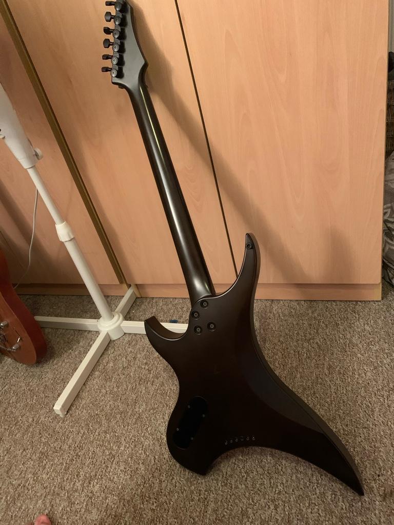 This unfortunately took some damage in shipping on the horns as well as on the neck pocket.