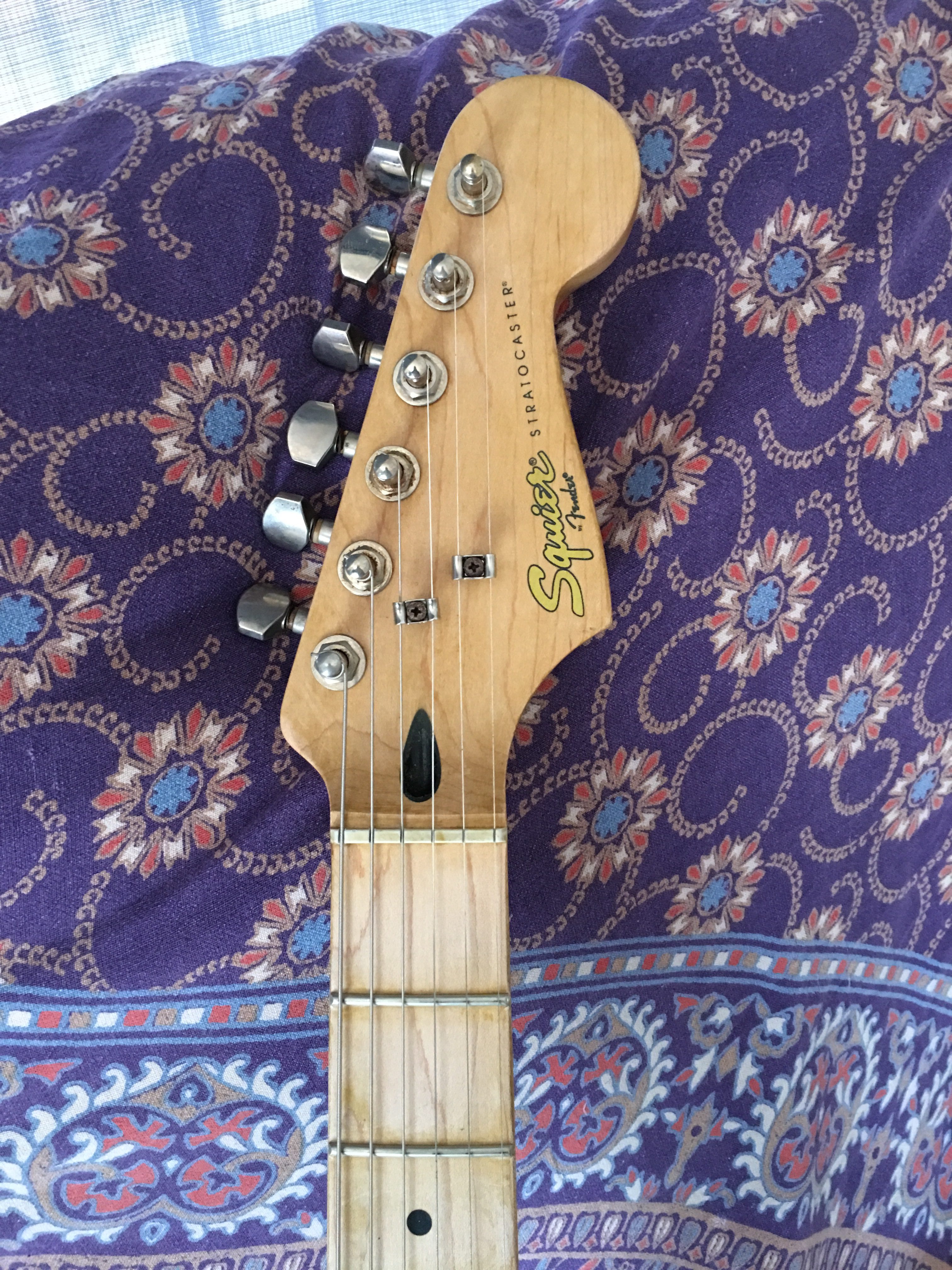 So the body is in pretty good condition, the hardware is not. Tuners barely like to move. I have Ratios ready to install, and a spare jack plate. I'll clean up the neck plate and the trem baseplate. A parchment pickguard and cavity cover should arrive soon. I'll try and clean up the screws and trees too. The nut looks a little rough, and the neck, well, who knows exactly what happened to it. I'll try cleaning it up first, and see where I'm at.
