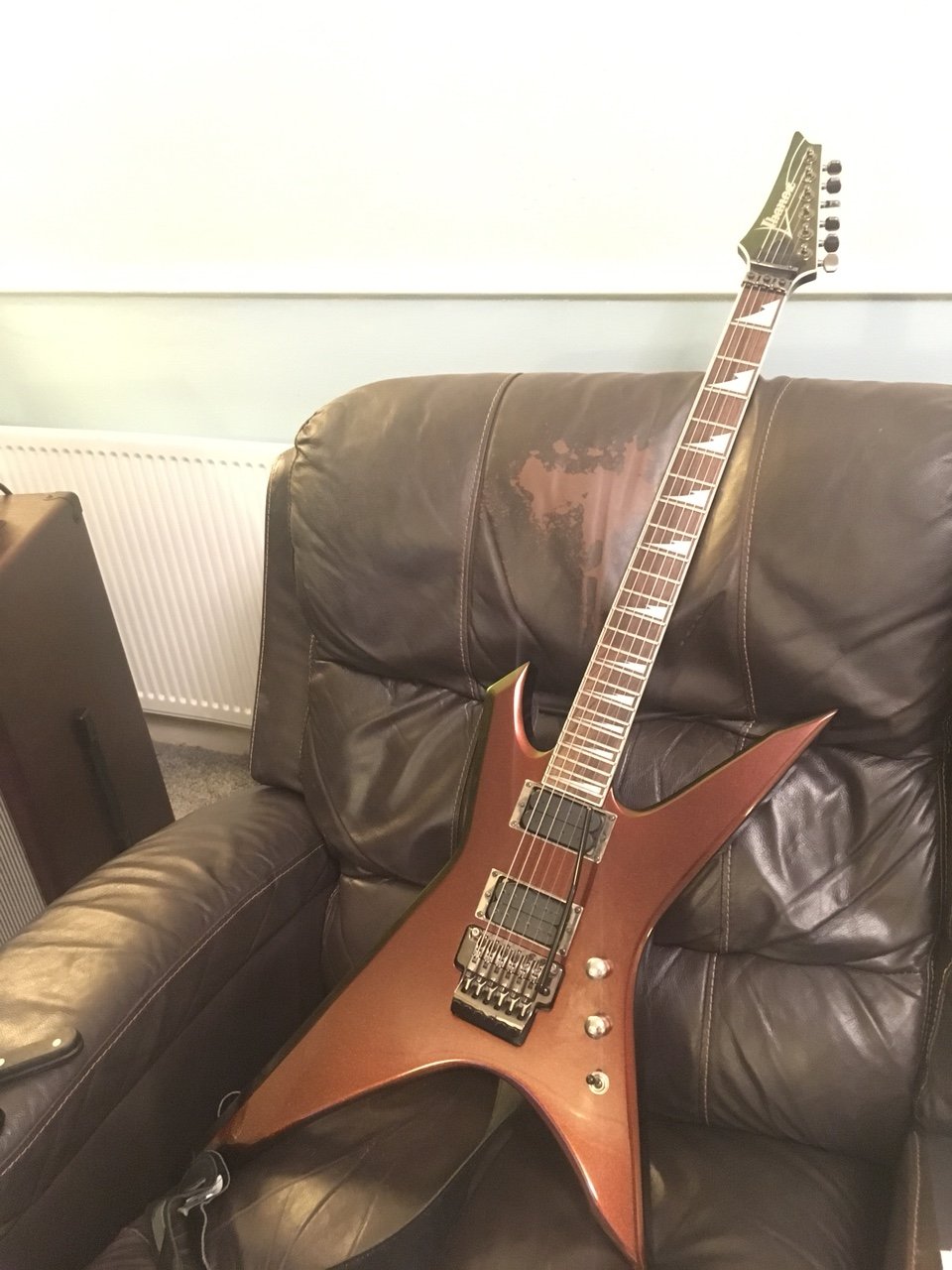OK, got it cleaned, re-strung and checked the wiring. Nice to see full size pots. First off, this guitar has a fantastic neck. Very comfortable and like every Ibanez I've owned, the intonation up and down the neck is fabulous. The volume and tone controls have a vey nice taper and basically, this guitar is a tone bomb!