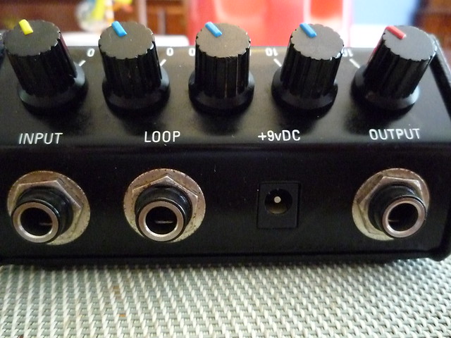 Good shape. Pots and jacks work perfectly. 9-volt battery does not work for me (may need a new terminal?) But power adapter works fine - uses standard sized power adapter (like a 1 spot or similar) Oxidation is on the soft metal washers only, not on or inside the jacks or switch.