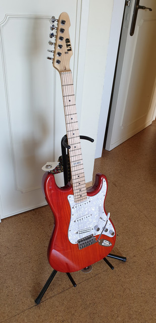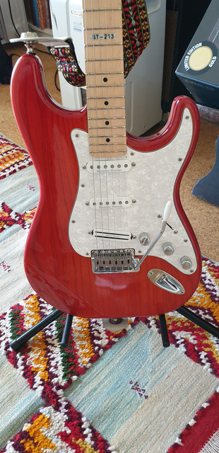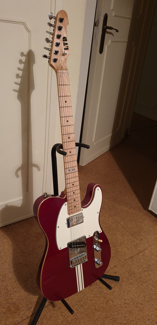 Replaced the pickups with a Quarter Pound Tele and a P-Rails Trembucker, added the speed knobs, String Saver saddles, Dunlop Straplocks and had the pick guard cut by WD Music. The previous owner had replaced the tuners with Grover locking tuners so I left them alone. There is a fair amount of finish damage. Lots of little scratches, buckle rash on the back and a handful of pretty nasty chips and gouges. I think I'll leave that alone too. The neck is straight and frets are beautiful.