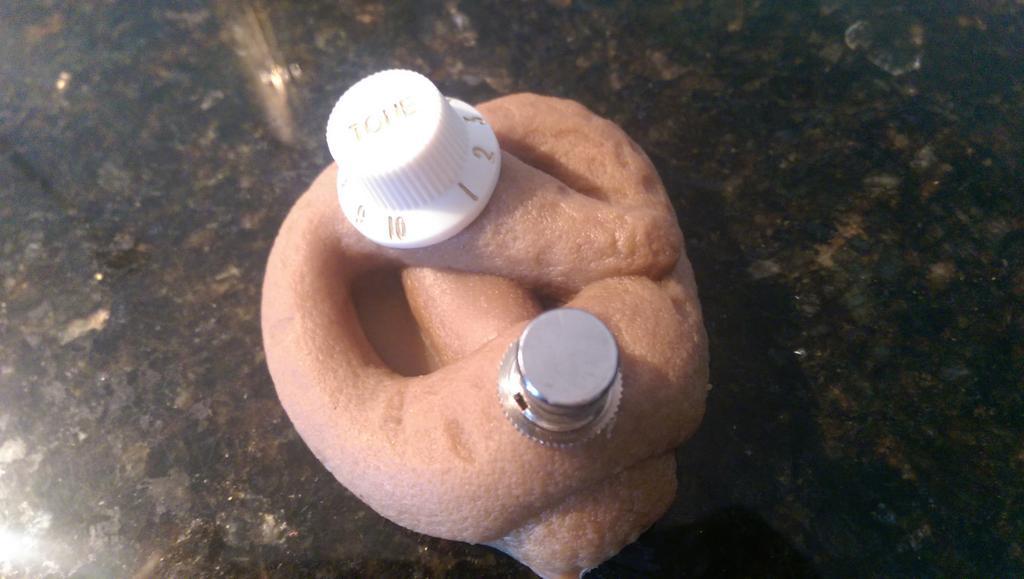 KNOB 1: "Growl" - This is the knob that makes the guitar sound mean like someone who stutters really fast. Turn it clockwise for meaner stutter