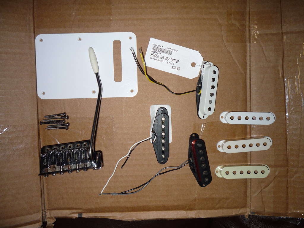 *For the single coil pickups, buyer gets to choose from the available pickup covers. I have 1 White, 1 off-white (parchment?) and 1 (what looks to be) mint. See the photos. I also have Black covers available.